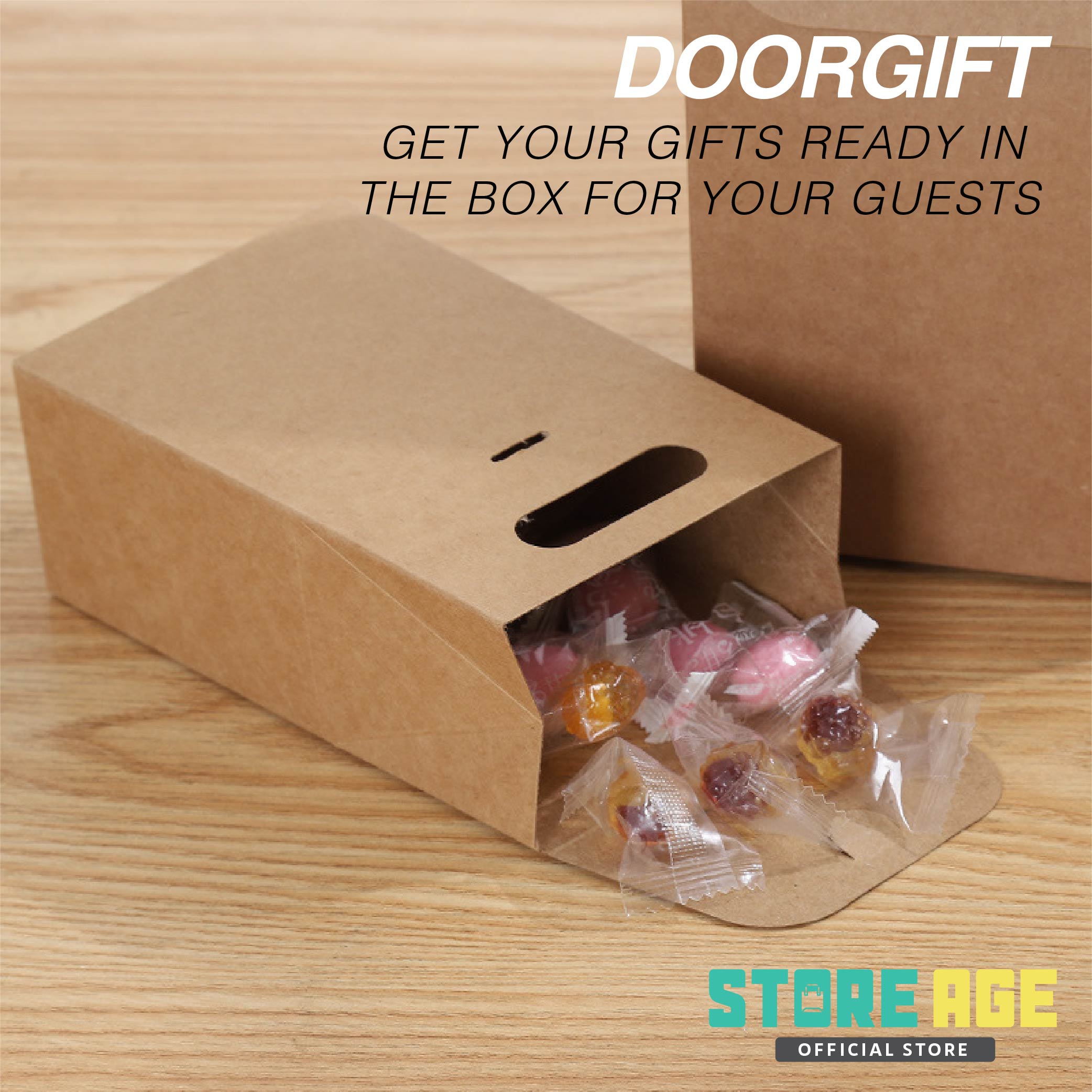Store Age [50pcs] Kraft Gift Box with Handle, Souvenir Candy Box, Kotak Doorgift Kahwin