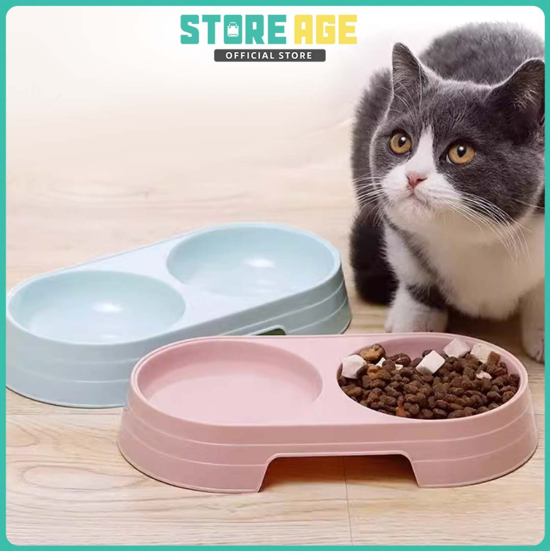 Store Age [1pcs] Pet Bowl | 2in1 Double Plastic Pet Bowl Cat Dog, Bekas Makanan Kucing Murah *READY STOCK*