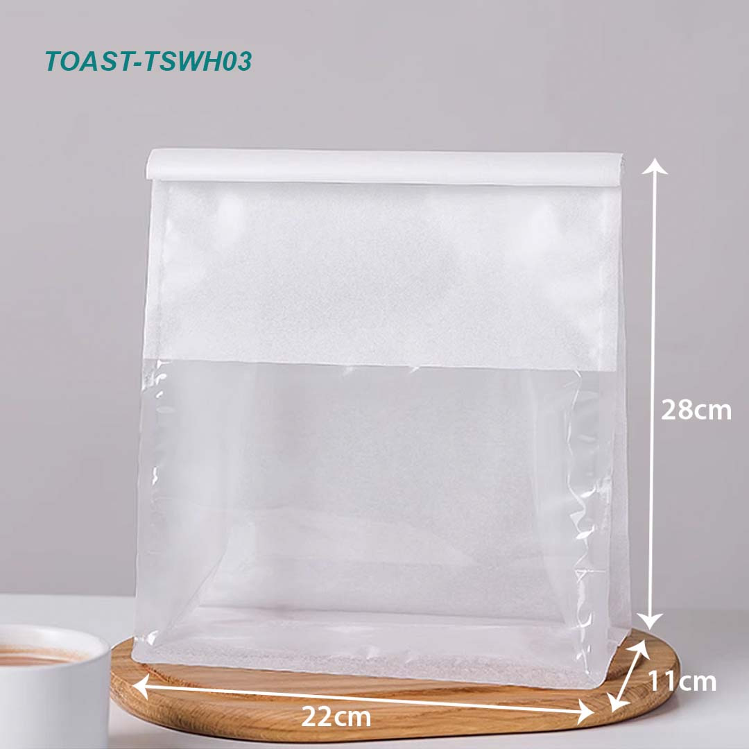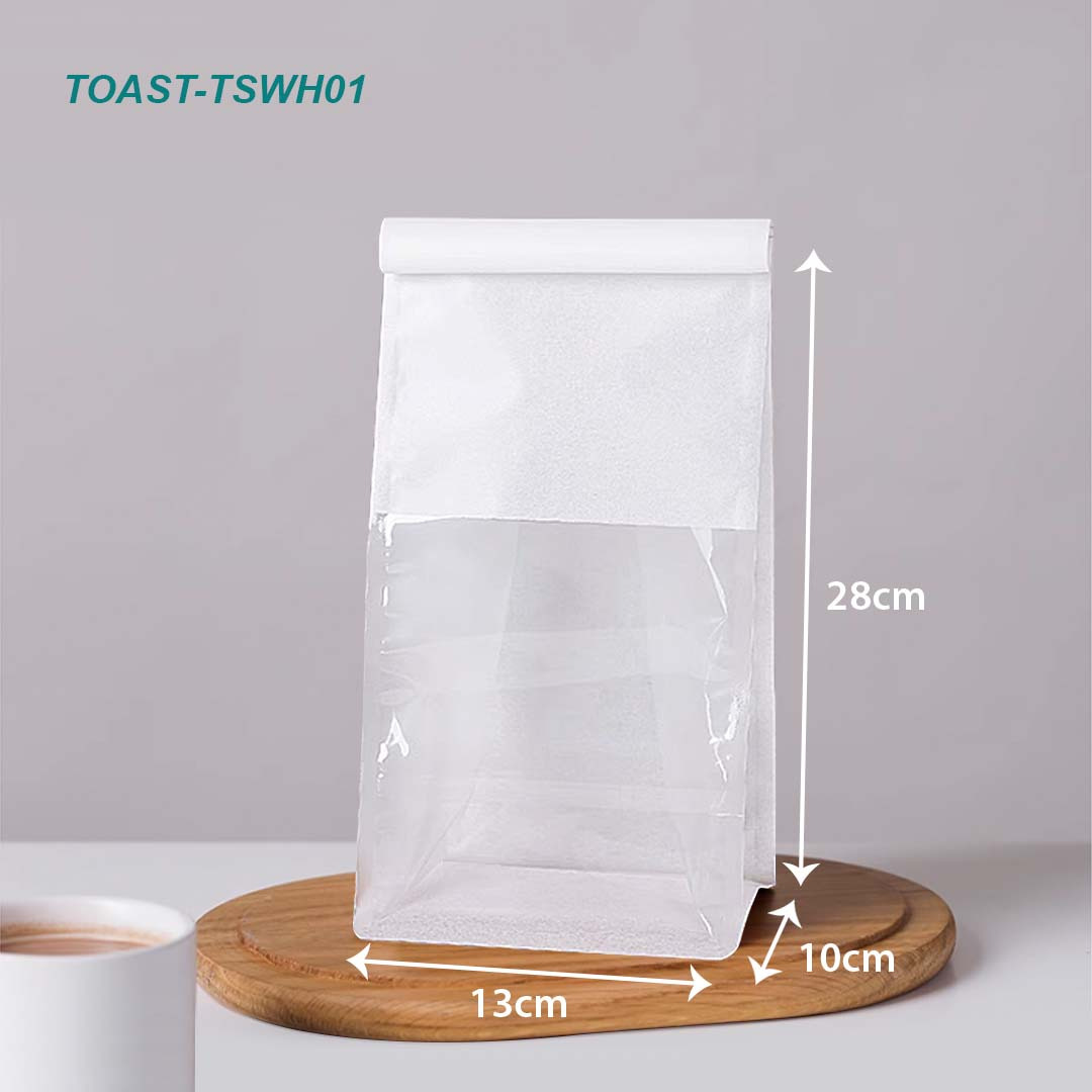 toast bag with curled wire-sealed is a type of packaging bag used primarily in bakeries, cafes, or food establishments for holding toasted items like bread, sandwiches, or pastries.