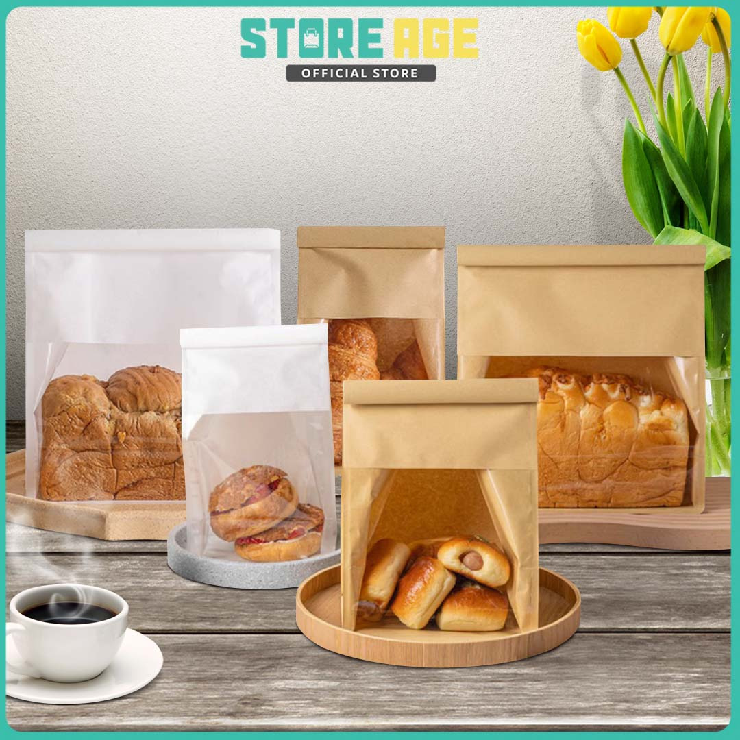 Store Age [50pcs] Toast Bag with Window | Bread Storage Bag, Bag Roti, Bakery Bag with Curled Wire-sealed